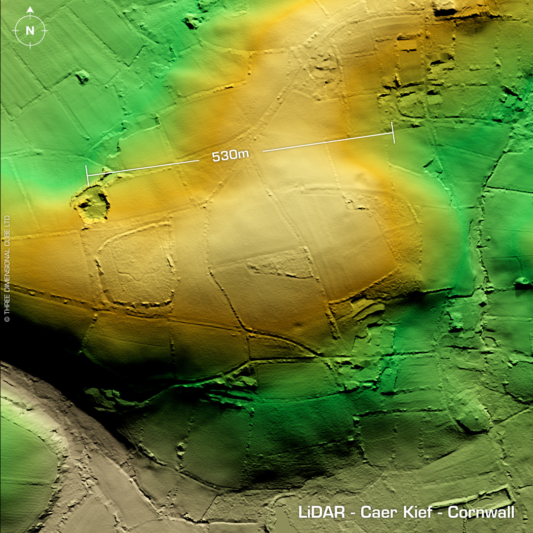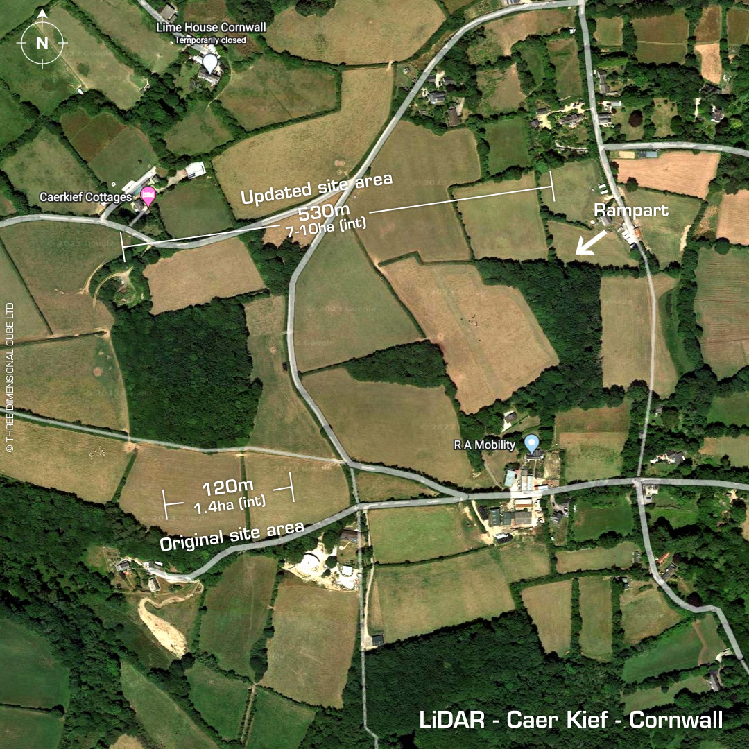 NEW DISCOVERY! When I was looking at the hillfort site, Engelly, which lies not far to the east of Caer Dane hillfort near Perranwell, I was researching old maps of the area as Engelly was supposed to be a complete circuit on these old maps but I couldn't find it. Now then, I did notice a much bigger hillfort illustrated north of Caer Dane on an 1865 OS Map of the area named as Karkief Castle. Nowadays this is called Caer Kief and was originally classified as a small ‘round' or (defended) enclosure but my newly found map indicated a much larger hillfort structure. So, I re-rendered a wide view and the northeast embankments stood right out so now you can almost visualise the complete circuit. I sent my findings to HER Cornwall, and it looks like I've been given the official nod by Hannah Curnow, who is the Historic Environment Record Officer for Cornwall. She also said that Historic England have been contacted to amend the scheduled area in light of these new findings. The HER map shows the current Caer Kief site area. This will now change to cover the entire east end of the hilltop. Winner! Mind you, the land owner might get a bit upset… (Re-Scheduled Monument)