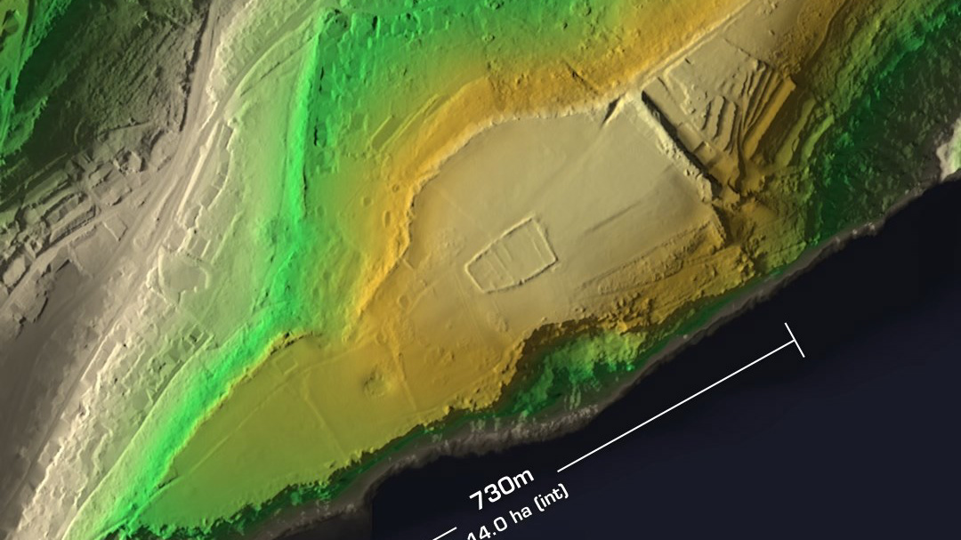 DTM- (Digital Terrain Model, i.e. No buildings or foliage) Just to the east of Lewes lies Lewes Downs. Within these downs lies the multivallate contour hillfort, Mount Caburn and the unfinished univallate partial contour hillfort, Ranscombe Camp. (Visible in oblique render above Mount Caburn as a line of ramparts. Mount Caburn was first excavated in 1877. (Early Iron Age finds within 40 pits) Next excavated in 1925 where British & Romano coins, iron age pottery & other implements were recovered from the 99 remaining pits. The 1937 excavation found occupation related finds from Iron Age to the medieval period. First occupied circa 300BC. Defences strengthened circa 43AD (due to Roman invasion). Mid 12 century use as a ‘Adulterine Castle’ (without royal approval during the ‘Civil war of Anarchy’ between 1139 & 1154) Army training in WW2 (slit trench) Last excavated 1996-1999 yielding prehistoric finds. Ranscombe Camp first excavated in 1878, then 1881, 1959-64 and 1997. Finds include Iron Age pottery and Romano British pottery. The overhead render may show the entire area as within the boundary of the unfinished hillfort, as the surrounding ramparts have been degraded apart from the obvious ones to the southeast. Iron Age tribal association (conjecture based on location): Regni (Scheduled Monument)